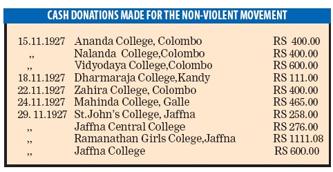 இலங்கையின் சில பாடசாலைகள் முன்வந்து காந்தி இயக்கத்திற்காக வழங்கிய நன்கொடை விபரம். பட உதவி : dailymirror.lk